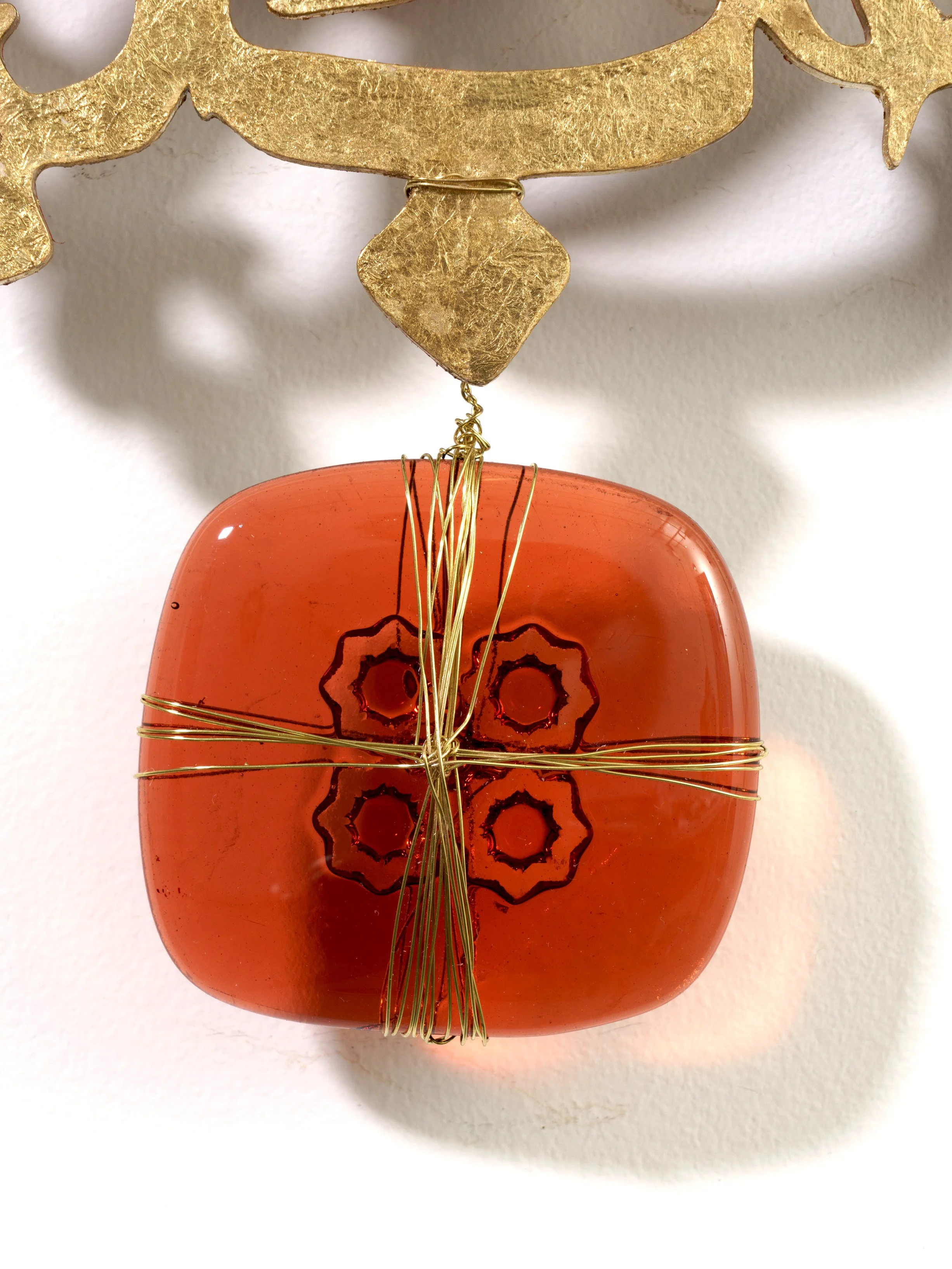 What’s a Little Shikaar (Hunt) Between Friends? Acrylic, enamel, and metal leaf on panel; cast glass36in x 22in x 2in